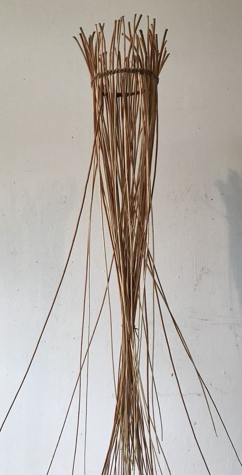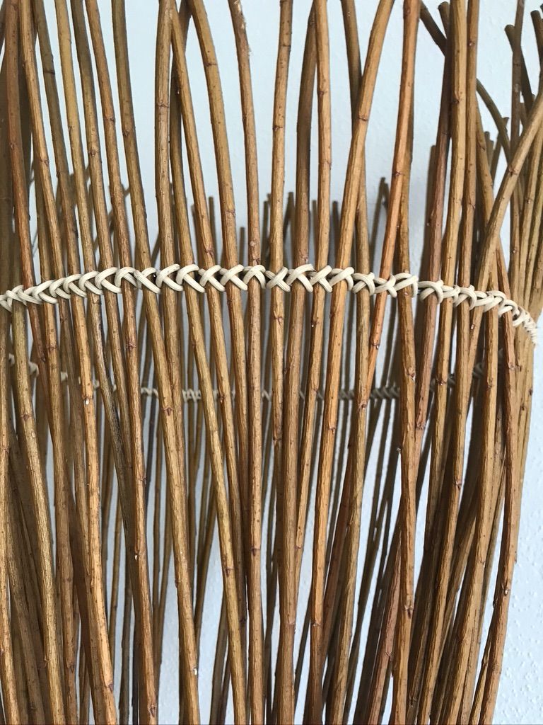 Fein sortierte und getrocknete Weidenruten aufgereiht zu einem Hohlkörper.