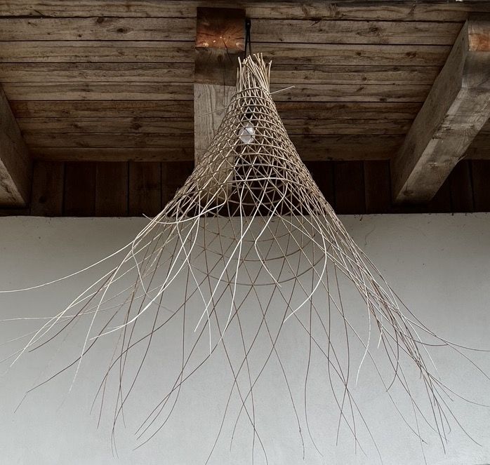 Durch das Zusammenspiel von Flechtstruktur und integrierter Lichtquelle entstehen lebendige Schattenspiele im Raum.