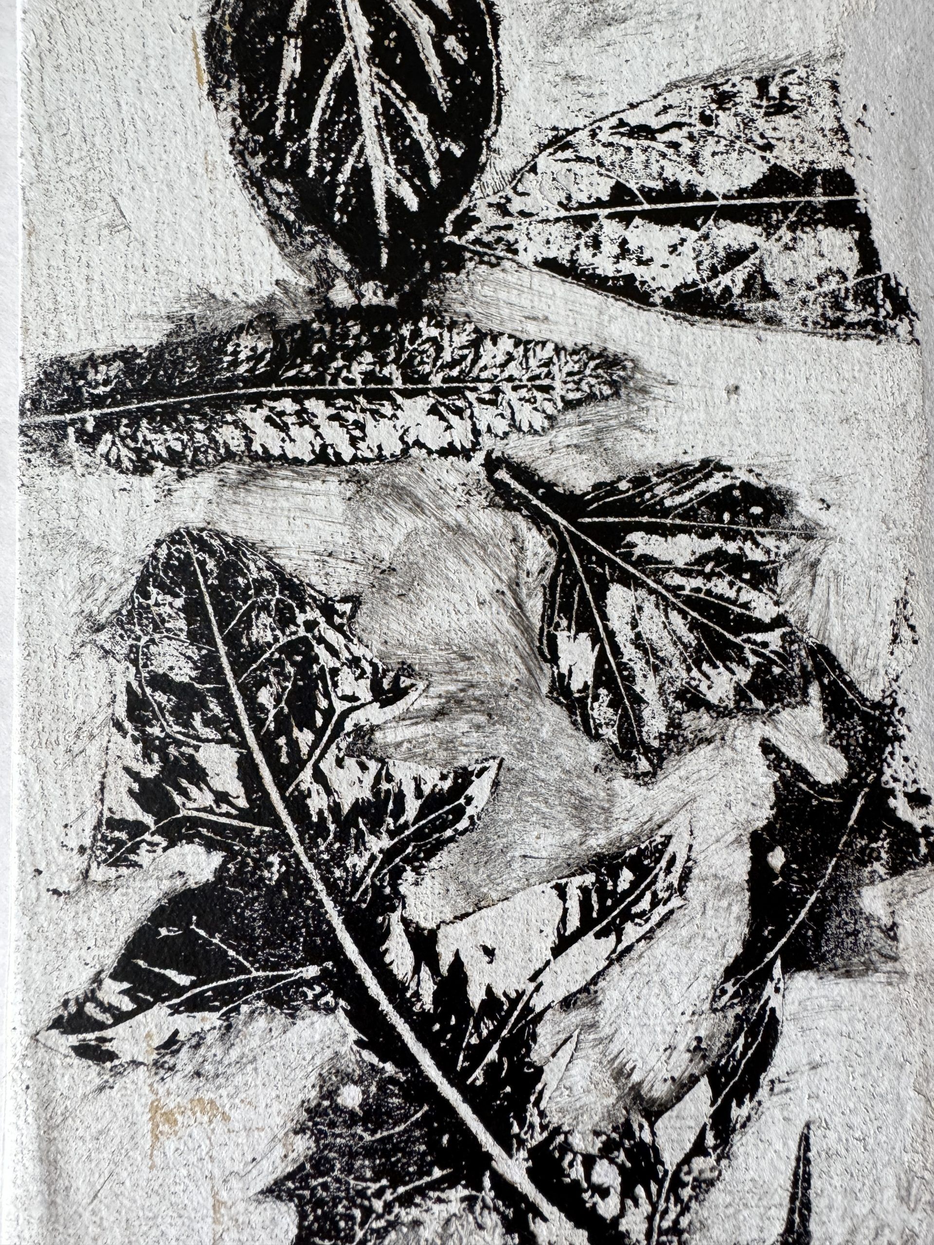 Experimentieren mit Gelliprint, Monotypie und Cyanotypie.